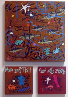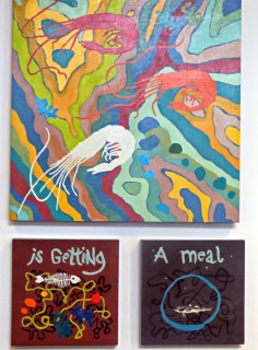I will have to make sure my daughter Lynnette (the artist in our family) sees these paintings. I think she might enjoy them. I thought the paintings were also cute in light of the little text writings added to some of them about who is eating who. 🙂