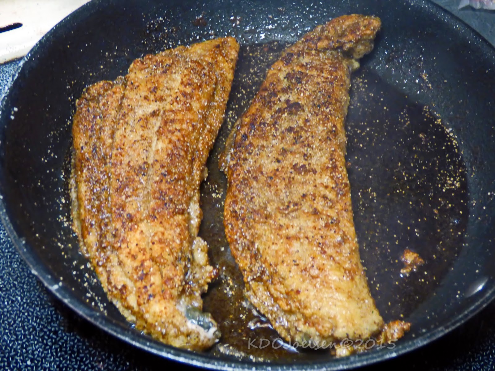 Melt butter in fry pan on medium high. Let butter get nice and hot and place two filets at a time in the fry pan. Fry in butter till golden brown and then flip to do the same to the other side. Should be done after 3/4 minutes of cooking. The meat should flake away when checked with a fork. Shrimp