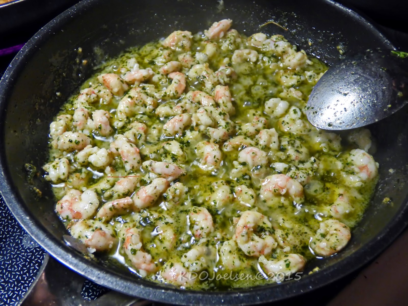 Melt butter till hot un medium high, add coarse garlic and parsley. Add shrimp into the fry pan. Cook for 2 to 4 minutes, add dry white wine and cook for just a few seconds. Turn off heat.